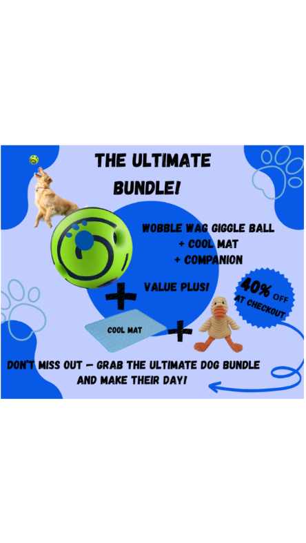 The Ultimate Bundle includes the famous Wiggle Wag Giggle Ball As Seen On TV, one cool mat to keep your furry friend cool on those hot days and one plush companion toy with 15 choices of animals to choose from. To receive 40% off the entire bundle use code SAVE40 at checkout!!